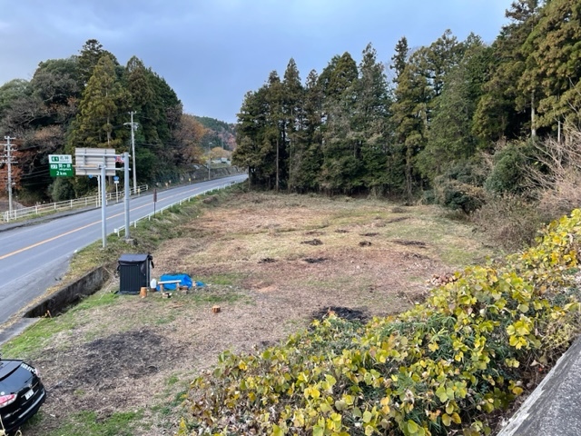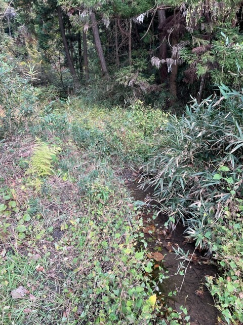 現在、自作で開拓中です。この写真が主に駐車場、事務所兼作業場となるエリアになります。更に下の写真がこれから開拓が必要なサイトになるエリアです。駐車場はこれから整地して砂利を敷いた駐車場になる計画です。