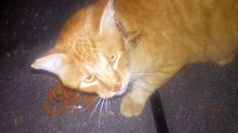 そして、チャトラを探しに駐車場の周りへ出かけようかと思っていた矢先、ケガをしたチャトラがどこからともなく私の足元にやってきました。