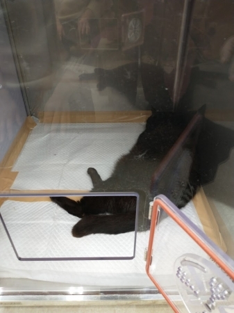 そこで、酸素室にいるアクオスを撫でようとしたところ、先生から高濃度の酸素が充填されているからドアをあまり開けないように注意されました。