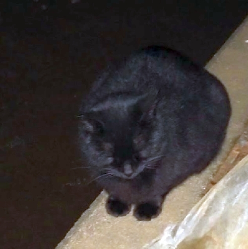 そして、何となく黒猫の顔を懐中電灯で照らしてみたところ、向かって左側に耳カットがあったのです。