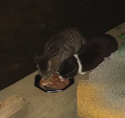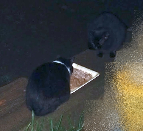 その後、新入りの黒猫は私がお世話にくると必ずご飯を食べに来るようになりました。