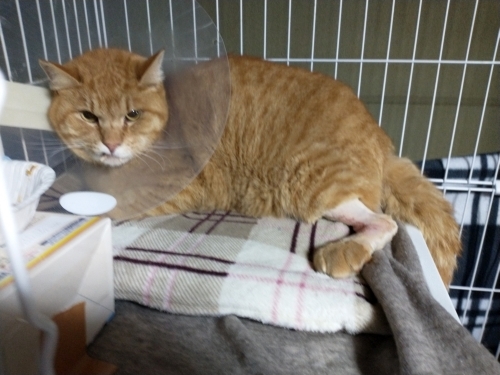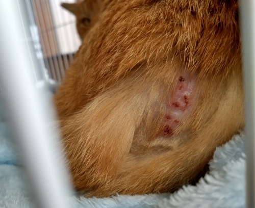 当のチャトラは痛みと恐怖からケージの中で固まってしまい、それ以上は患部を見ることはできませんでした。