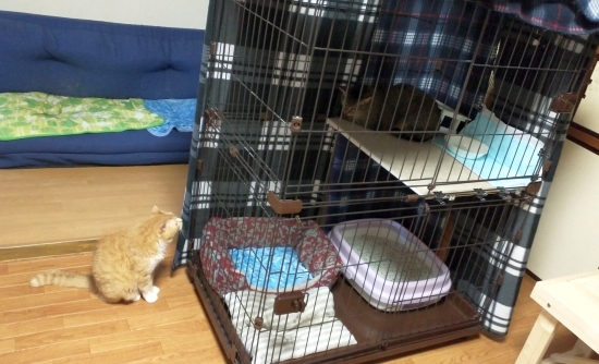 今後はリビングの先住猫たちとケージ越しに顔合わせをしてから、ケージ暮らしを卒業する予定です。