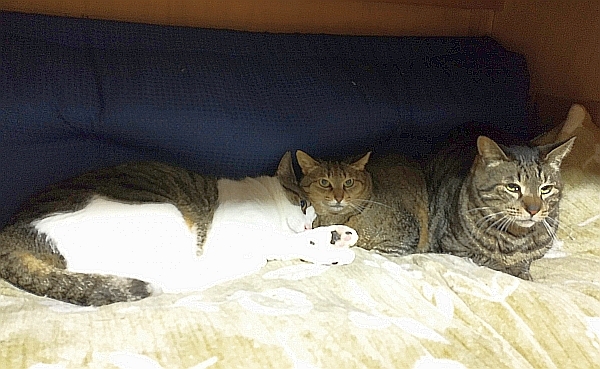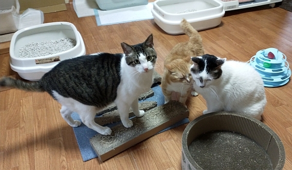 さて、猫たちの様子ですが、いろいろな工事があって慌ただしい日々だったものの、相変わらず元気に過ごしています。