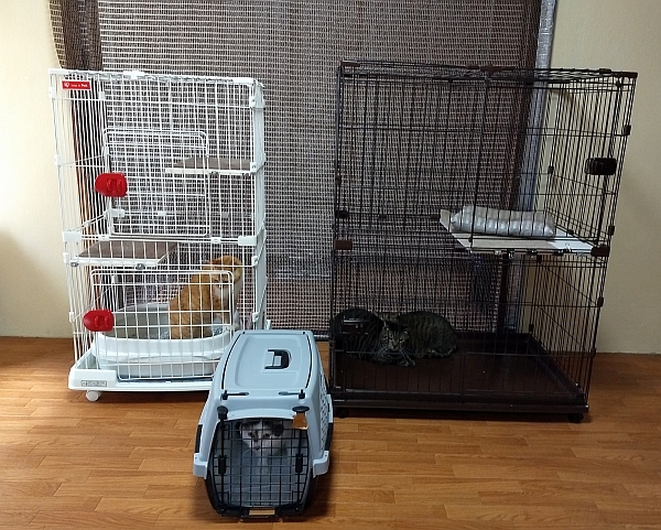 リビングの猫たちが一斉にケージに入るのは、本当に久しぶりのことです。