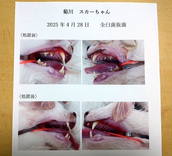 こうして何度か病院の診察と相談を繰り返した結果、4月の末にスカーの抜歯手術を行うことになりました。
