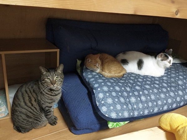 こうして猫たちが季節ごとに寝床を変えている姿を見られるのは、保護主冥利に尽きるというものです。