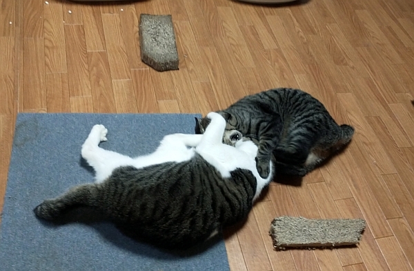 なかでも、アリスくんとともくんはすっかり仲良しになり、毎日元気に猫プロレスに興じています。