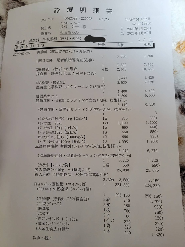 愛犬そらの心臓手術費用に使用させて頂きます