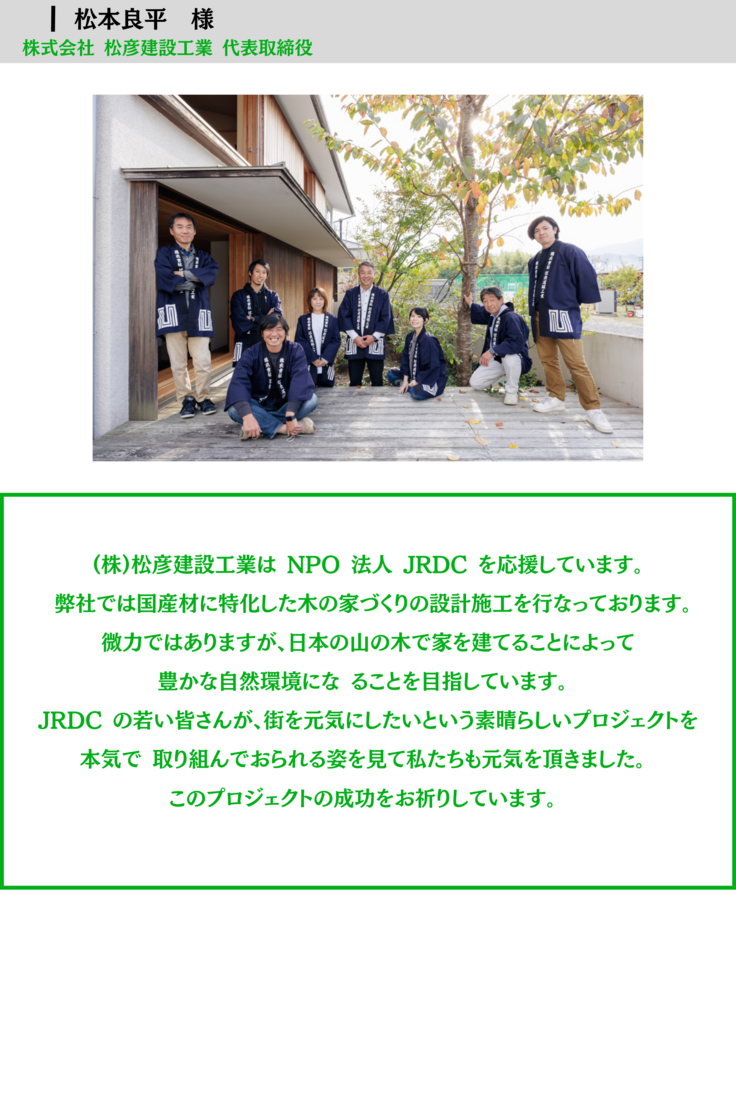 - 西村匠史(特定非営利活動法人 Japan Regional Development Cooperation)