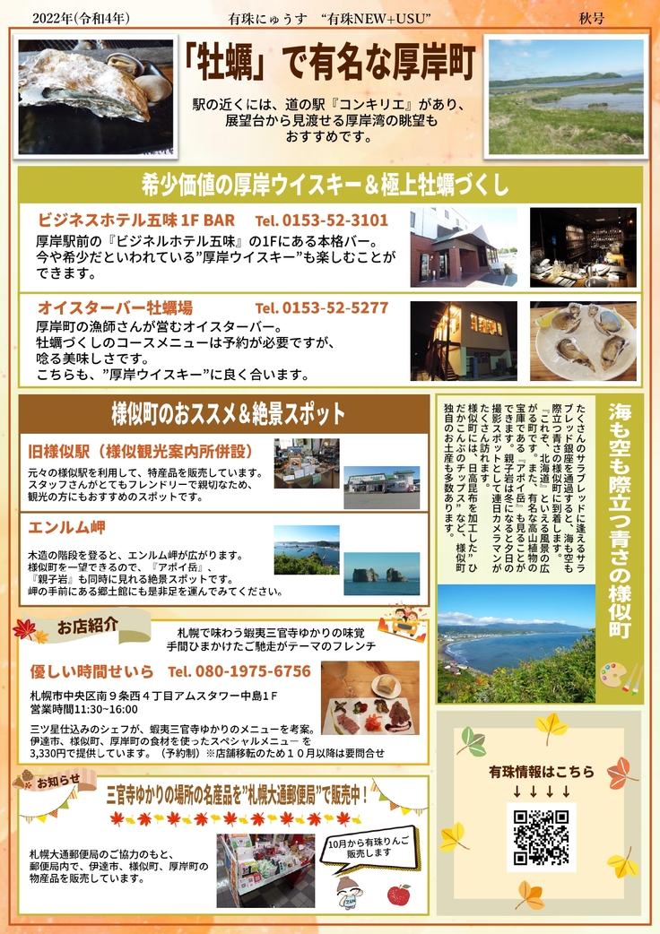 年2回の発行を目標にしている、有珠にゅうす。秋号は3つの町を回りました。