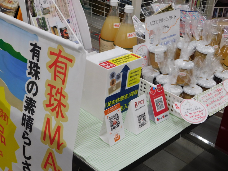 有珠のりんごジュースなど販売しています。秋は有珠のりんごも販売。