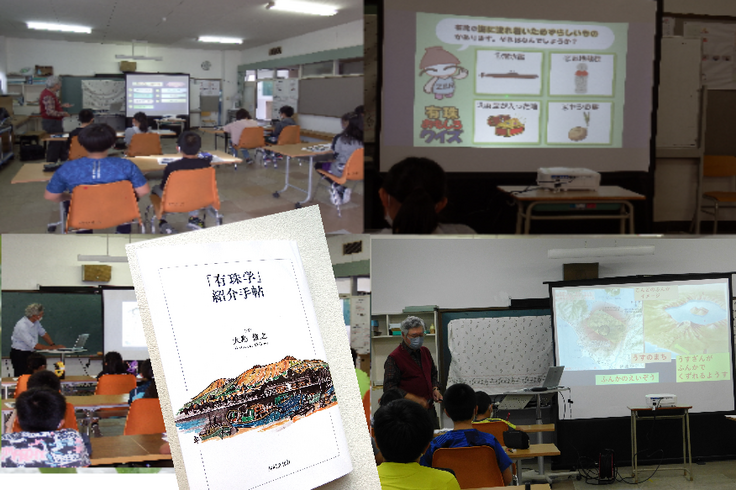 写真は、有珠小学校で有珠学の授業の様子です。有珠のクイズも出題しました。講師は有珠出身の北見工大名誉教授・大島先生です。有珠の自然と歴史を後世に伝える大島先生の著書「有珠学紹介手帳」が今年2月に出版なりました。著書は書店やAmazonなどで販売しています。