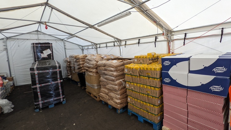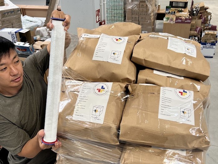 ウクライナ・ポーランド国境沿いにある施設に一時的に保管されているフードパック。ここからウクライナ人ドライバーの手で東側の戦闘地域に運ばれ、直接住民に手渡される