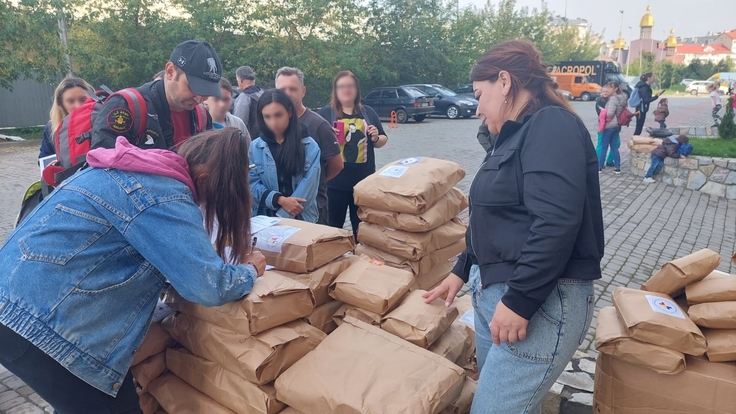 当団体が連携して活動する団体は、ウクライナの西側に隣接するポーランドを拠点に、1家族1週間分程度の保存食を袋に詰めてウクライナ国内の主に東側地域に届けます。ポーランドからウクライナへは大型トラックを使って輸送し、ウクライナ国内では、ウクライナ人ドライバーがバンで各都市まで輸送します。