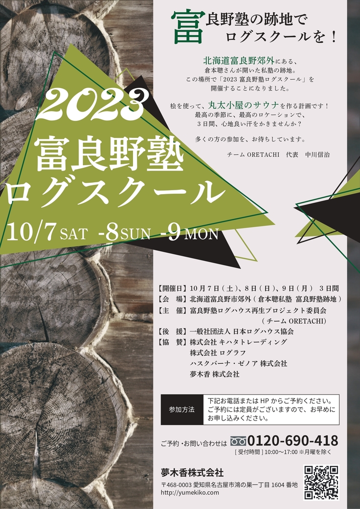 富良野塾跡地にて、ログスクールの開催が決定いたしました。