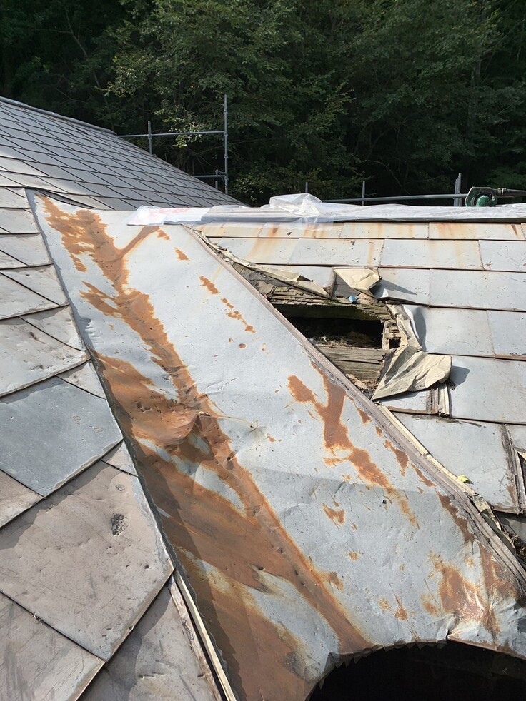 着工時の屋根は、穴があいて中に雨水が入り、垂れ木などの構造材が一部腐っている状態でした。