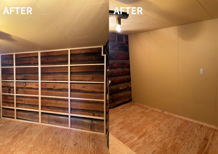 AFTER 写真、、、下地の木を十文字に施工して、壁も天井の不燃材で仕上げました。