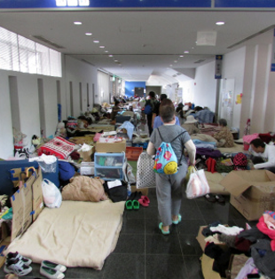 熊本地震の避難所の様子。余震の続く中で、食事や水、安心できる居場所を探し求め続けた日々