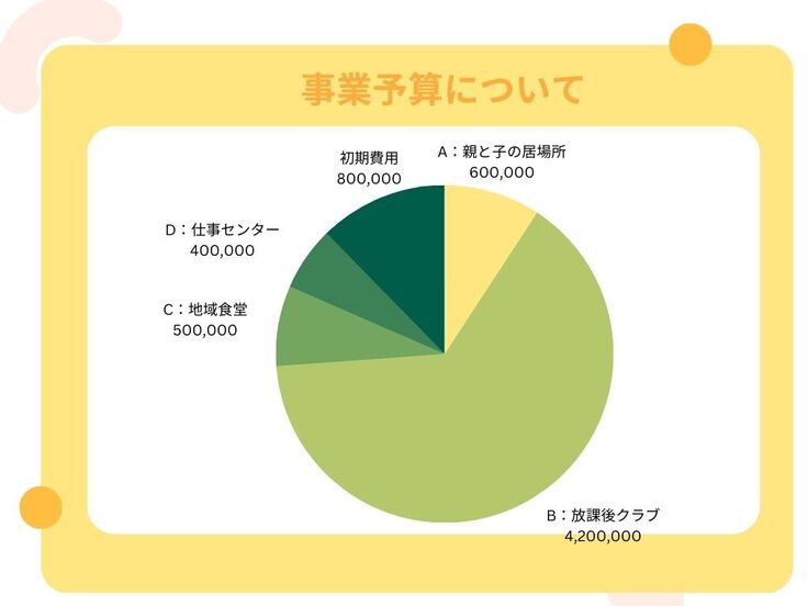 本事業に取り組むにあたり、初年度一年間の経費はおよそ650万かかると想定しています。まずは事業Bのこがみ舎放課後クラブでの学習支援(平日)をスタートするための有償ボランティアの人件費や夕食の提供にかかるおよそ200万円の支援を皆さんにご協力いただければと願っています。残りは自己資金と複数の助成金申請や寄付金などを募りながら資金を調達し、できるところから順次スタートしていく予定です。