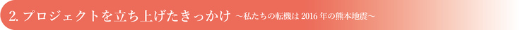 一瞬のうちに大切なものを失ってしまう経験をした2016年の熊本地震。私たちは自らの被災経験を通して災害時に忘れられがちな女性や子ども支援の重要性を痛感し、ひとり親家庭を対象にした食事会や野外体験活動などを行いました。