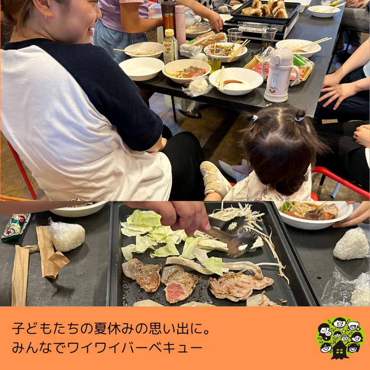 おやこ食堂では、夏バテを吹き飛ばし、夏休みの思い出に!ひとり親の会と連携し、バーベキュー大会を開催しました。当初はこども農園での開催予定でしたが、天気が崩れる予報だったこともあり、急遽室内へ。また今回初めての参加が複数ありました。