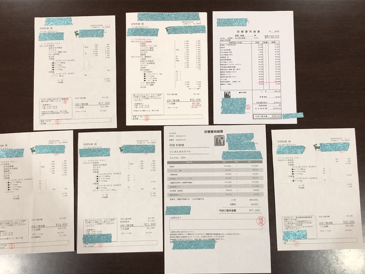 ページ上に掲載している診断書や診療明細書などの資料は全て動物病院から掲載の許諾を得ております。