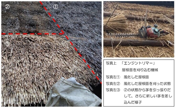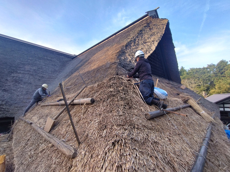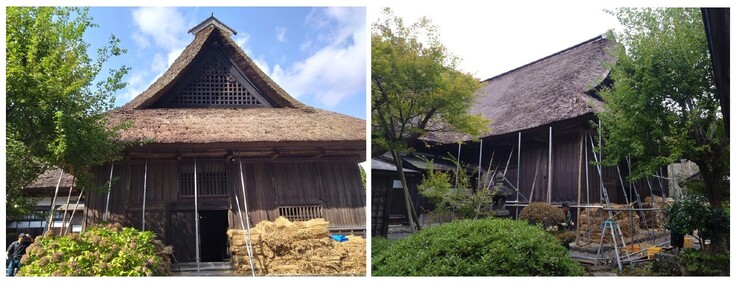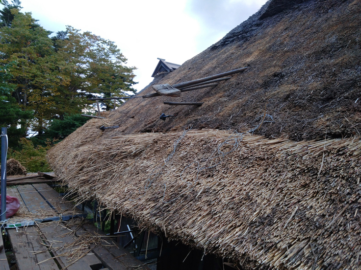 10月16日より三浦館保存プロジェクトの一つである「主屋の茅屋根修繕(差し茅(さしがや)工事)」が始まりました。