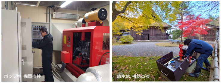 また、三浦館屋敷内に設置してある放水銃と消火栓、それらに水を送水するための大型ポンプ設備などの点検を(株)相場商店 様より実施していただきました。