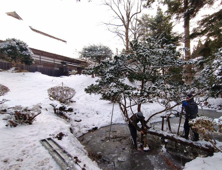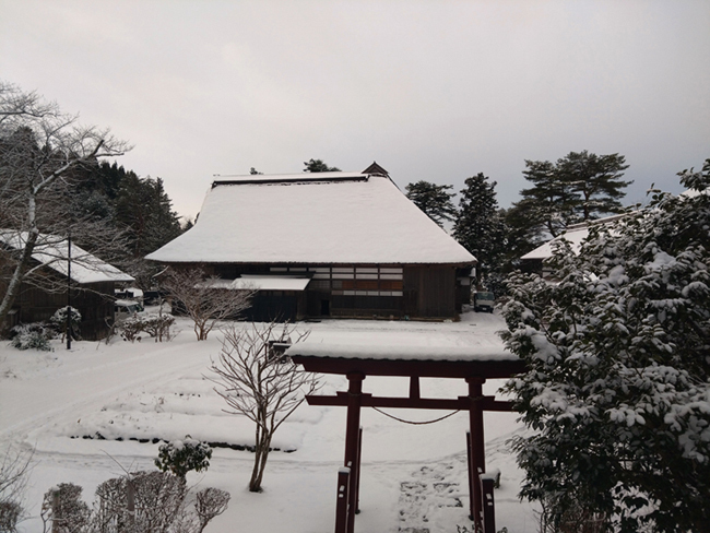 前週までとは景色が一変し、雪に包まれた三浦館は冬の装いとなりました。
