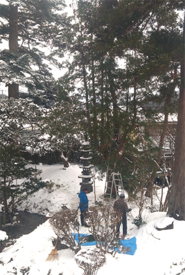 庭の樹木剪定、そしてアカマツへのマツクイムシ防除作業です。