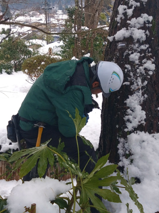マツクイムシ防除は、6年毎に屋敷にあるアカマツに作業をおこなっています。