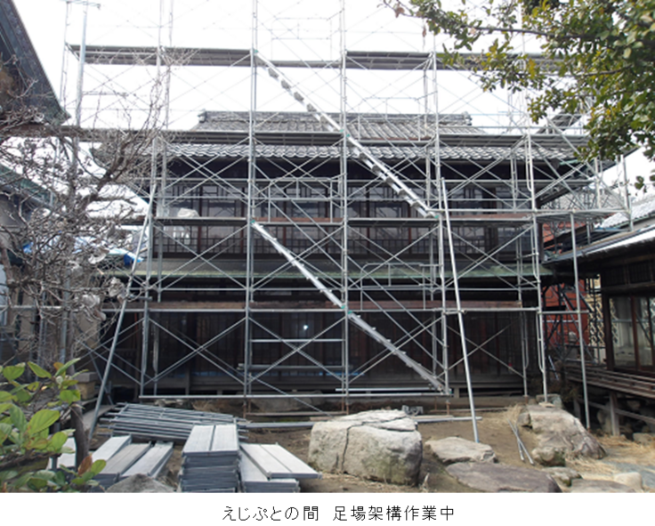 【合田邸通信Vol.3】主屋棟・店棟・土塀保全工事が完了し、「えじぷとの間」の作業を開始しました!
