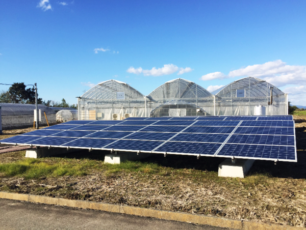 この最初の取り組みとして、2015年12月に福岡県久留米市善導寺町で、大型の鉄骨ビニールハウス「善導寺ファーム」を建て、隣に太陽光発電システムを置き、ミニトマトの生産を開始しました。