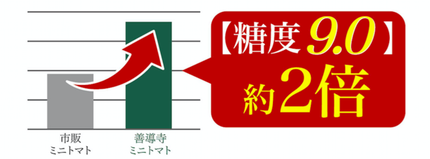 イチゴの糖度が8.0なのに対し、善導寺トマトは9.0!!!