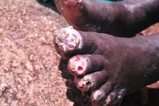 スナノミ症の患者さんは、スナノミが寄生している罹患部分の見た目から、差別や偏見を受けることを気にして外に出られないという現状があります。