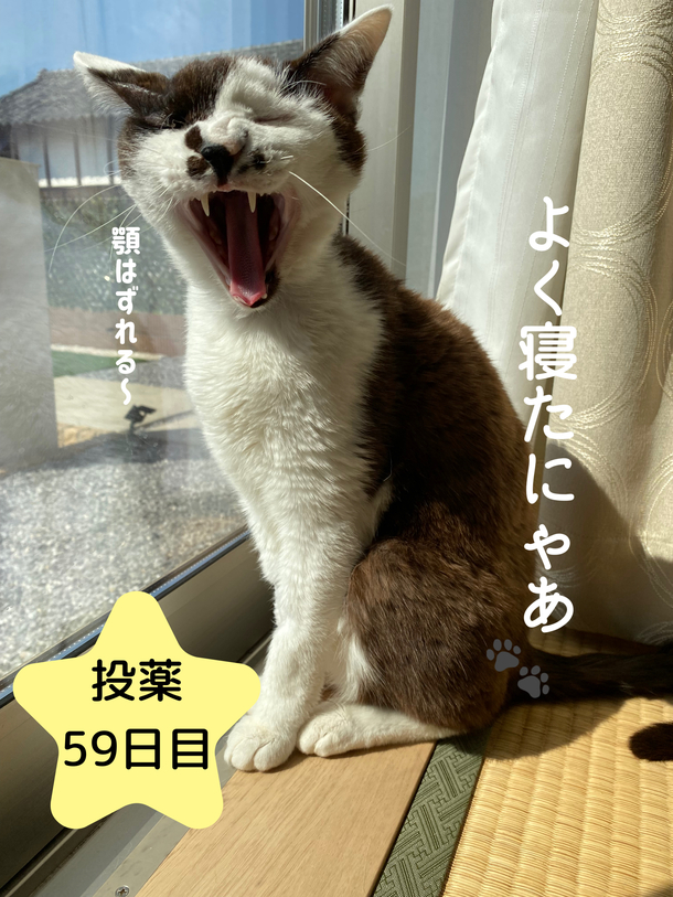 ぽかぽかな窓際でお昼寝して、よく寝た〜!!と豪快なアクビ🥱