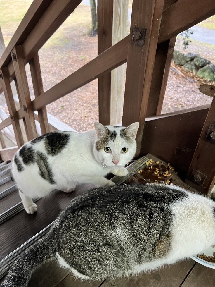 モヒートは私の職場であるキャンプ場で保護したのですが、その職場に別の猫が遊びに来てくれました。ですが、その子がモヒートに似すぎていてビックリしています。