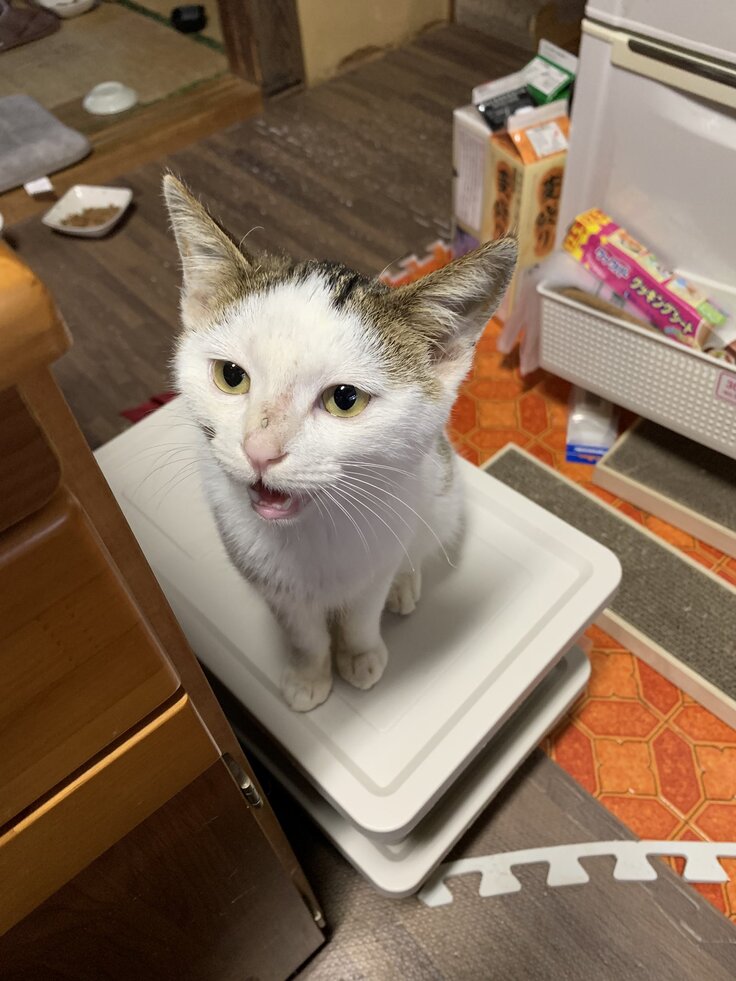 モヒートは栄養失調で倒れているところを保護しました。通院の甲斐もあって元気になり、東京で元気に過ごしてくれていて安心しています(^^)