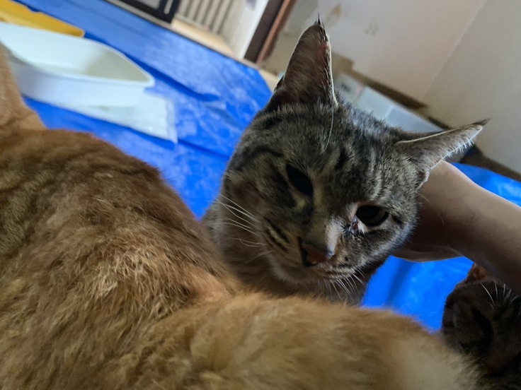 猫風邪と目ヤニが出ているので治療していこうと思います。凄く穏やかな性格で、我が家の猫達とも仲良くできそうです(^^)