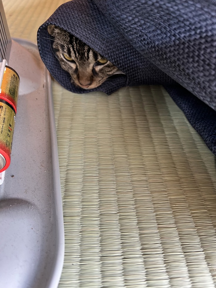知多が来る事を楽しみにして頂いていたようで、トイレ2つ、爪とぎなど色々なグッズを用意して頂いていました。到着後に緊張する知多ちゃん。おそらく、普段の匂いと違うからか緊張しています。