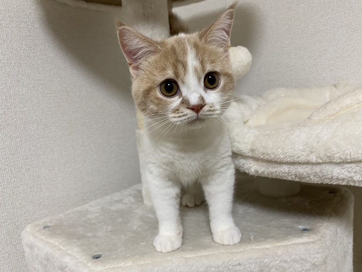 目がまん丸で、触るともちもちしていて、はじめて会ったにも関わらず喉をグルグル鳴らしながら抱っこをさせてくれ、それが可愛くて12月12日に家族になりました。