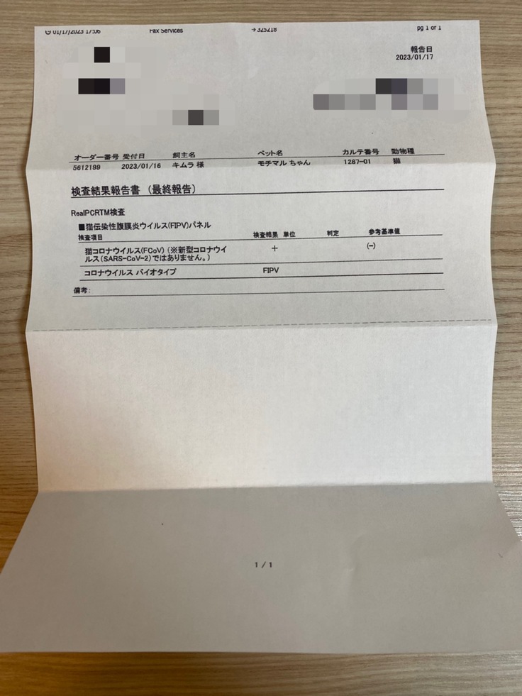 「猫伝染性腹膜炎FIPの結果 陽性でした