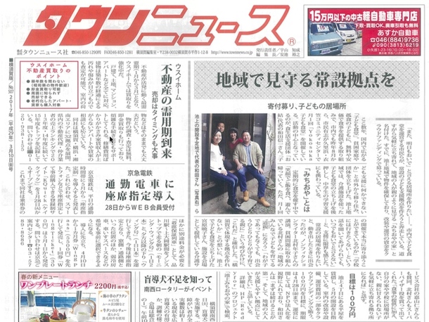 本日3月10日発行号のタウンヌース横須賀にて、”地域で見守る常設拠点を”と題し、こちら「池上みちおやの家」の取り組みについて、ご掲載いただきました!