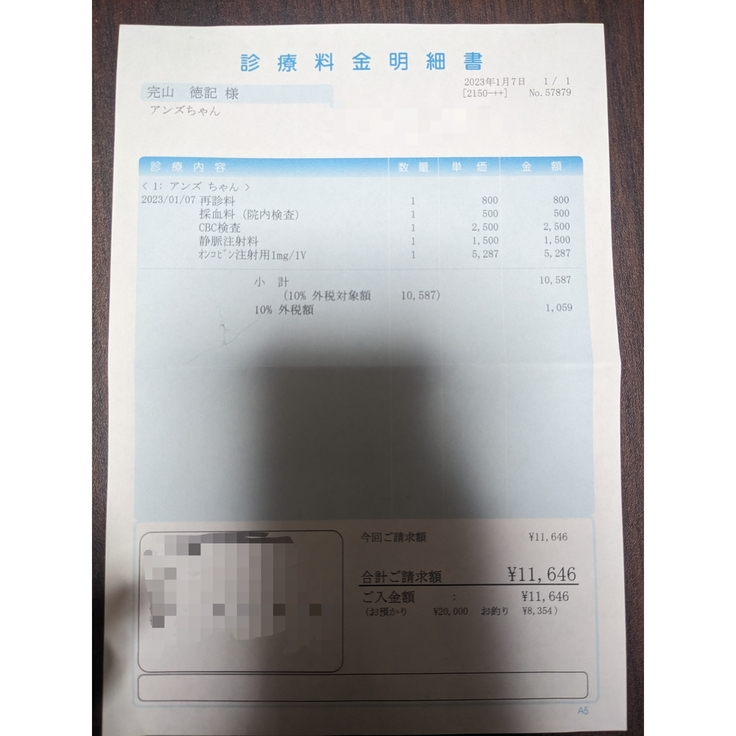 あんずちゃんの抗がん剤治療とその費用。