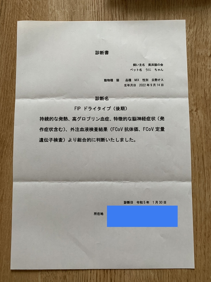 今回ご支援いただいた支援金は全てウニのFIP治療費に充てさせていただきたいと思います。