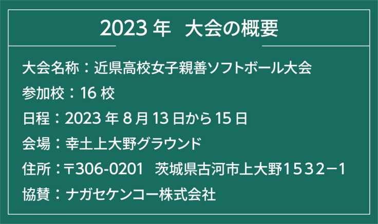 限りある高校生活の時間を充実させ、ソフトボールを楽しんでもらう機会を絶やさぬよう、皆様からの温かいご支援をお待ちしています。