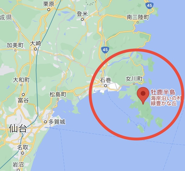今日は、KANGAROOM号の活動拠点の一つである石巻沿岸部牡鹿地区を牡鹿半島(地図📍)からご案内致します。
