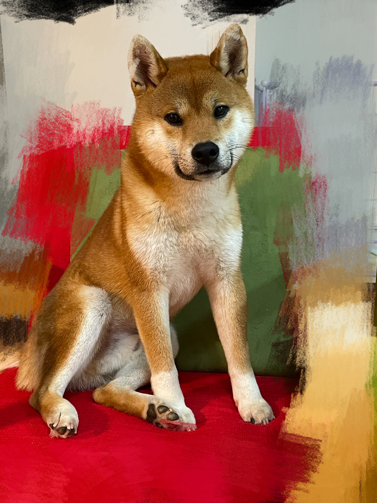 柴犬のめご丸は約2歳(保護犬のため、正確な年齢は不明です)のオスです。 チャームポイントは大きな耳と長い脚と靴下のような前脚の模様、好奇心旺盛でやんちゃなとっても可愛い子です。