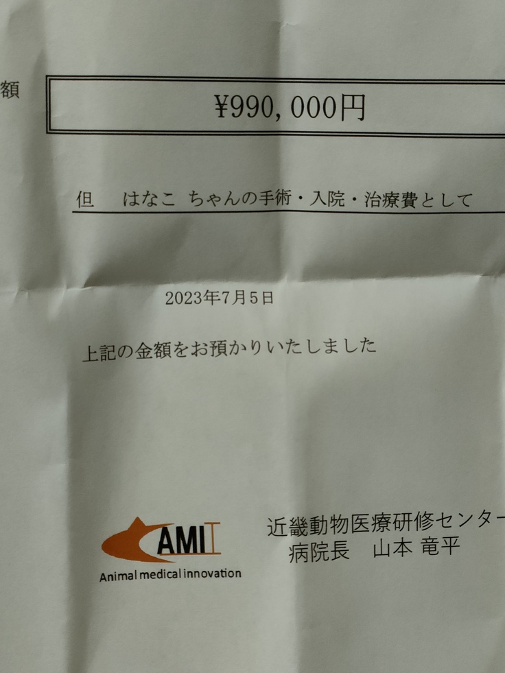 ご支援は全てはなこの治療費、手術費に充てさせていただきます。